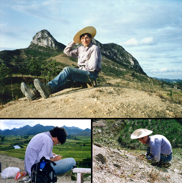 Abbildungen 25-27 (oben): Bei Geländestudien in einer anisischen Abfolge (Mitteltrias) bei Qingyan, Provinz Guizhou, Südwestchina (September 1992).
