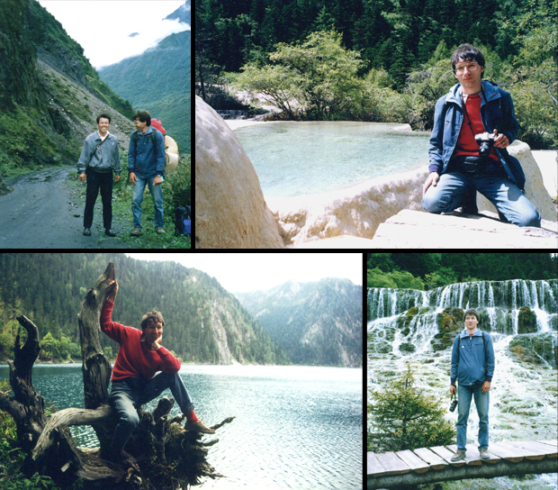 in China (1990-1991). Von Juli 1992 bis Mai 1993 arbeitete ich im Rahmen meiner Diplomarbeit am Nanjinger Institut. Ich untersuchte die Paläoökologie einer mitteltriassischen Fossilvergesellschaftung in der südwestchinesischen Provinz Guizhou. Im Anschluss an die Geländearbeiten (September 1992, Abbildungen 25-27) reiste ich in die Randgebirge des Tibetplateaus im Norden der Provinz Sichuan, wo ich unter anderem hochinteressante Hochgebirgs-Kalksinterbildungen studieren konnte (Abbildungen 28-31). Die Rückfahrt nach Nanjing per Schiff durch die berühmten und auch geologisch sehr interessanten Schluchten des Yangzi-Stroms rundete die Reise ab.