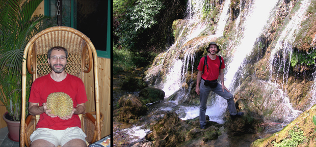 35-36 (oben): China und Deutschland 1995. Mehrere kürzere China-Aufenthalte in der zweiten Hälfte der 1990er Jahre umfassten unter anderem geologisch-paläontologische Exkursionen ins Paläozoikum nördlich von Beijing sowie private Reisen ins Songshan-Gebirge in der nordchinesischen Provinz Henan und in die Kegelkarstlandschaft in der Provinz Guangxi in Südwestchina (Abbildungen 37-40). Private Reisen in Europa mit geologischen und/oder paläontologischen Anteilen führten in dieser Zeit unter anderem ins Altmühltal (Abbildung 36), in die slowenischen Alpen, ins Ahrntal (Südtirol; Abbildungen 41-42) und in die bayrischen Alpen (Abbildung 44), nach Lanzarote, an die Algarve und nach Südengland. Exkursionen im Rahmen von paläontologischen Tagungen ermöglichten unter anderem Einblicke in die Trias Ostdeutschlands, das Devon der Eifel und die Trias des Tessins (u.a. Monte San Giorgio). Auch bei Gabo und Andy in Augsburg schaute ich vorbei (Abbildung 43).