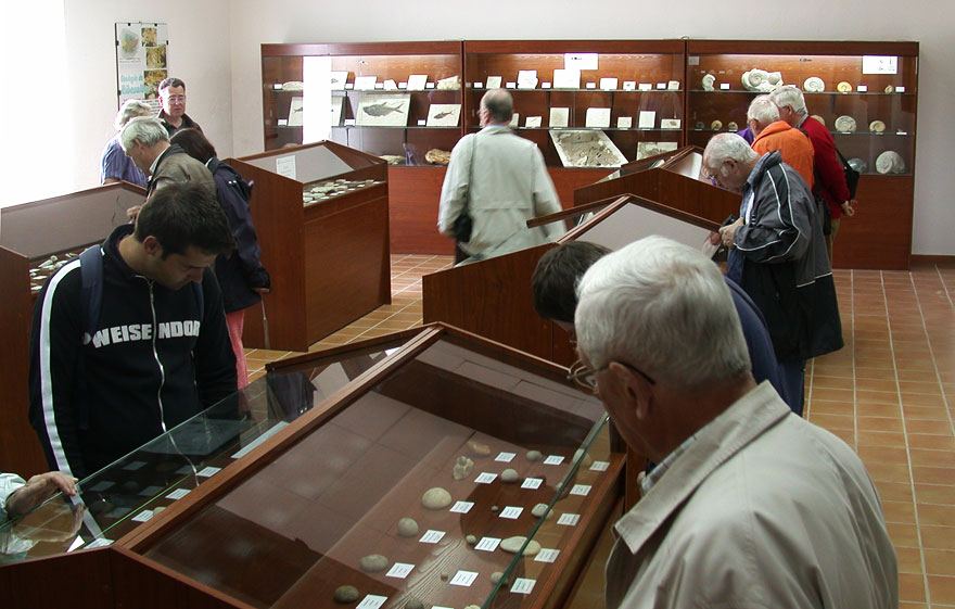 In Tisch- und Wand-Vitrinen wird eine Vielfalt von Fossilien gezeigt, wobei natürlich ein Schwerpunkt die Miozän-Funde der alten Mine nahebei sind.
